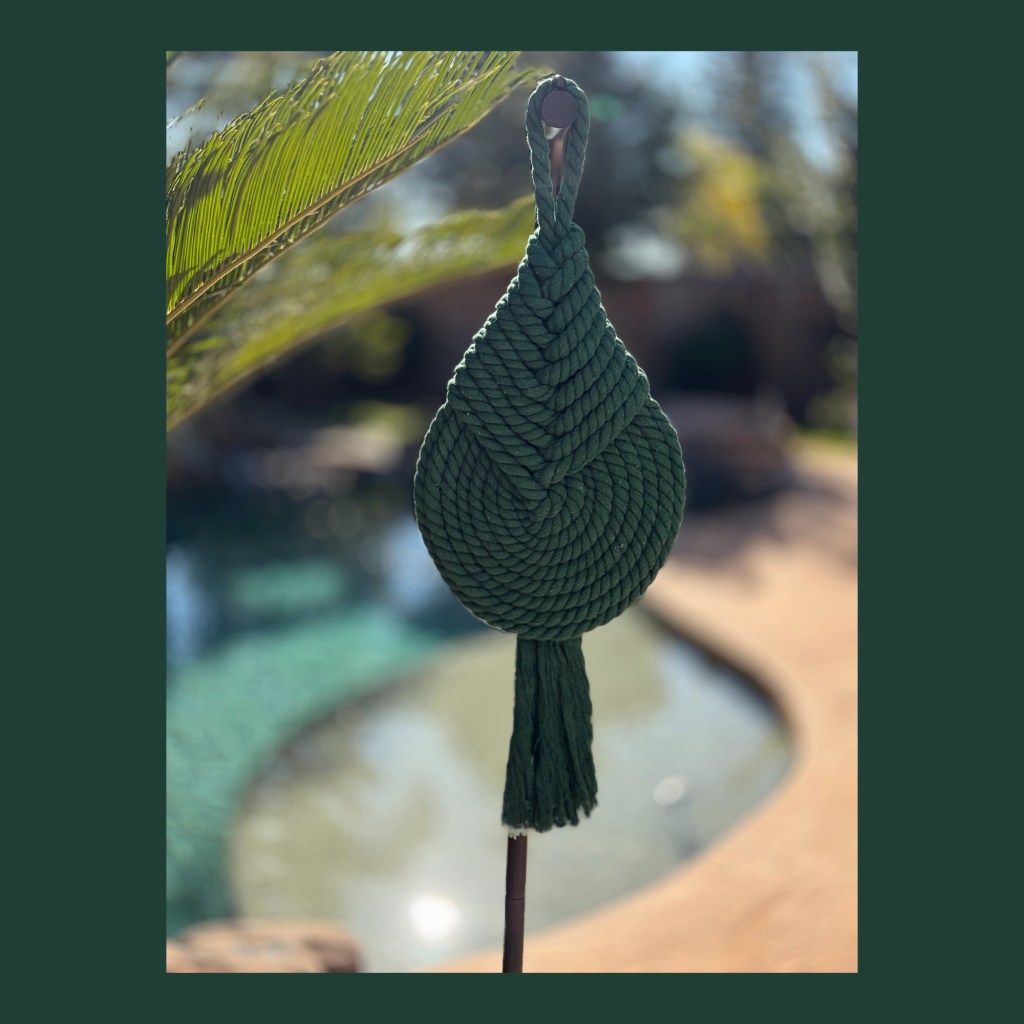 This large dark green pipa knot wall hanging is all about movement and balance. The continuous knot creates a strong yet calming presence, while the deep green adds an earthy, grounded feel. A bold statement piece that still feels organic and timeless.